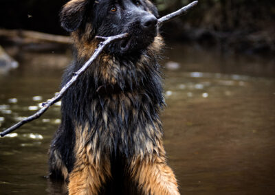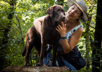 Aujourd’hui, je veux vous raconter une journée très spéciale qui m’a remplie de bonheur et d’émotion. Pendant une de nos balades en forêt, nous avons rencontré un photographe. Il était très gentil et avait plein de friandises pour moi. J’étais aux anges !