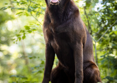 Salut, c’est moi, Maïa, la labrador chocolat de 9 mois ! 🐾 Je suis très gentille et gloutonne, j’adore les câlins et la nourriture, mais ce que j’aime par-dessus tout, c’est m’amuser : avec des copains, mes humains préférés ou même toute seule avec mes jouets. Ma maman est toujours à mes côtés pour prendre soin de moi et m’emmener faire de super balades dans les bois ou à la rivière. Je suis très chanceuse d’avoir une maman comme ça, elle me gâte énormément. J’ai des jouets à gogo et des friandises à foison, et elle me donne même un petit surnom mignon : Chocolatine (à cause de ma couleur chocolat) ! Ma vie est remplie d’amour et d’amusement, et je suis la plus heureuse des chocolatines. 🐶❤️